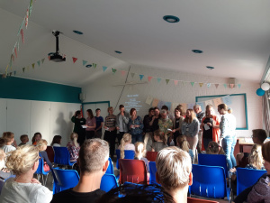 De slotavond werd goed bezocht. Zo konden de ouders en gemeenteleden ook een stukje VBW meemaken. Het eindbedrag van ons gespaarde geld voor het adoptiekindje Nerlande werd bekendgemaakt, € 84,-! En we zagen dat Bram & Britt de puzzel oplosten. Het verhaal van de verteller ging over Jezus, die de kinderen zegende. De kinderen hebben het themalied: ‘Alles andersom, alles anders, keer het om’ gezongen en de foto’s zijn bekeken. Een leuke afsluiting van een geslaagde week!