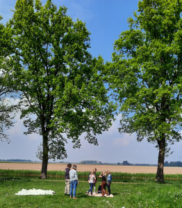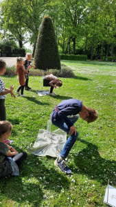 De vossenjacht was erg leuk, gelukkig werden alle vossen gevonden. Er was een knutseldag. We maakten van mozaïek steentjes een spiegel waarop stond: ‘Jij telt mee!’ De laatste dag gingen we naar de kasteeltuin voor de Alles Andersom-spelletjes! In plaats van dat het konijn uit de hoge hoed springt, moest hij nu in de hoge hoed gegooid worden. Terug bij het Visnet kregen we natuurlijk eerst het toetje en pas daarna konden we genieten van de BBQ.